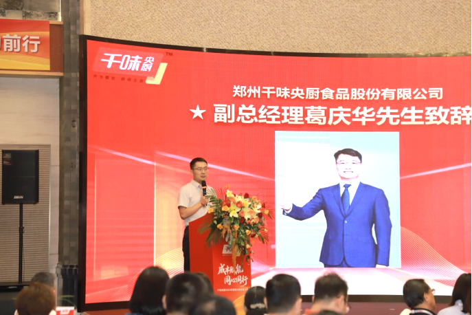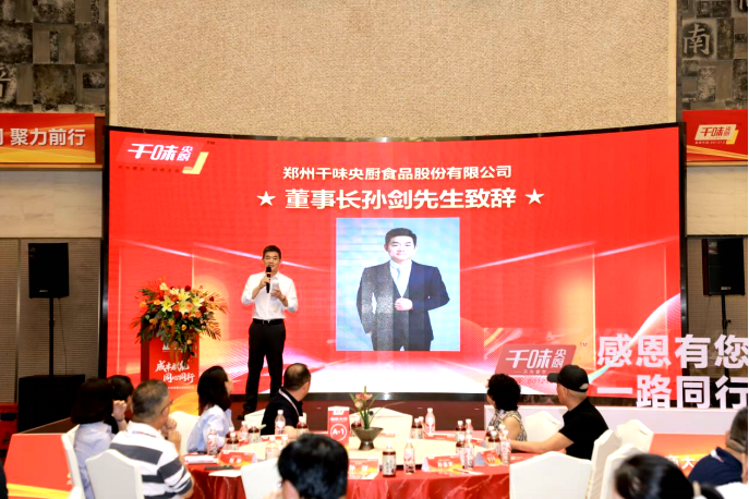 河南黃國糧業(yè)股份有限公司總經(jīng)理周子鈔上臺致辭,回顧與千味央廚合作的點滴歷程,同時也很榮幸能夠與千味央廚共同合作,為千味央廚提供糯米粉原料支持,協(xié)助打造千味央廚首個過億大單品芝麻球;周總表示未來希望能夠與千味央廚持續(xù)深化合作,實現(xiàn)互利共贏。