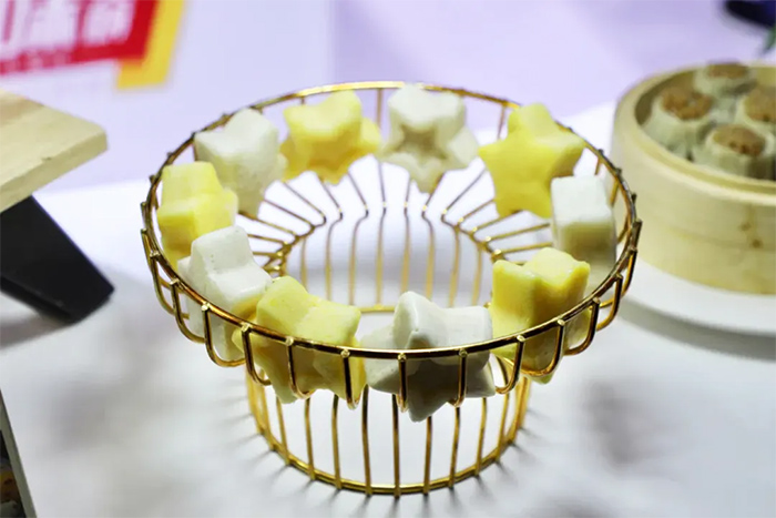 現(xiàn)場琳瑯滿目的產(chǎn)品好吃又好看,包含油條、燒麥、飯團(tuán)、米糕、餅類、烘焙、預(yù)制菜、糯米粉圓等各大品類,整體設(shè)計(jì)新穎,創(chuàng)意十足,彰顯品牌實(shí)力。