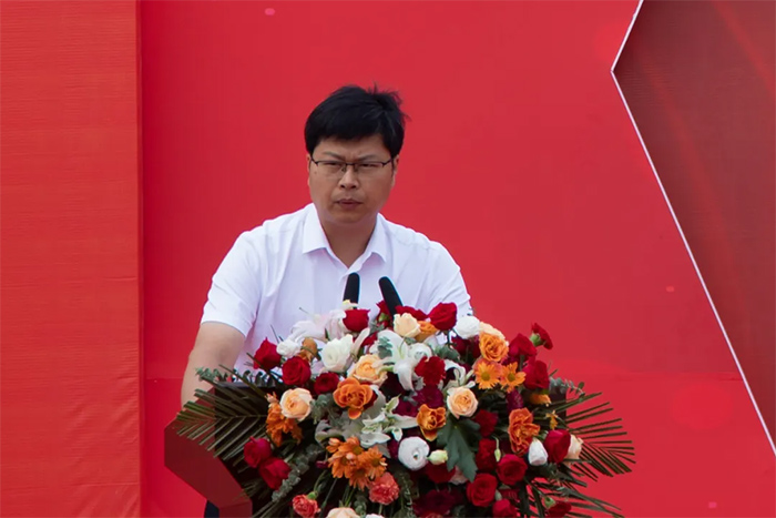 鶴壁百順源食品有限公司項目負(fù)責(zé)人秦興俊致辭,5個月18天,我們齊心協(xié)力完成了總部交給我們的艱巨任務(wù)。一號車間項目的投產(chǎn)只是開始,是新的起點,接下來日子里,我將繼續(xù)帶領(lǐng)團(tuán)隊,發(fā)揚項目建設(shè)的奮斗精神,將一切歸零,堅持不懈的以高標(biāo)準(zhǔn)完成總部下達(dá)的生產(chǎn)任務(wù)。